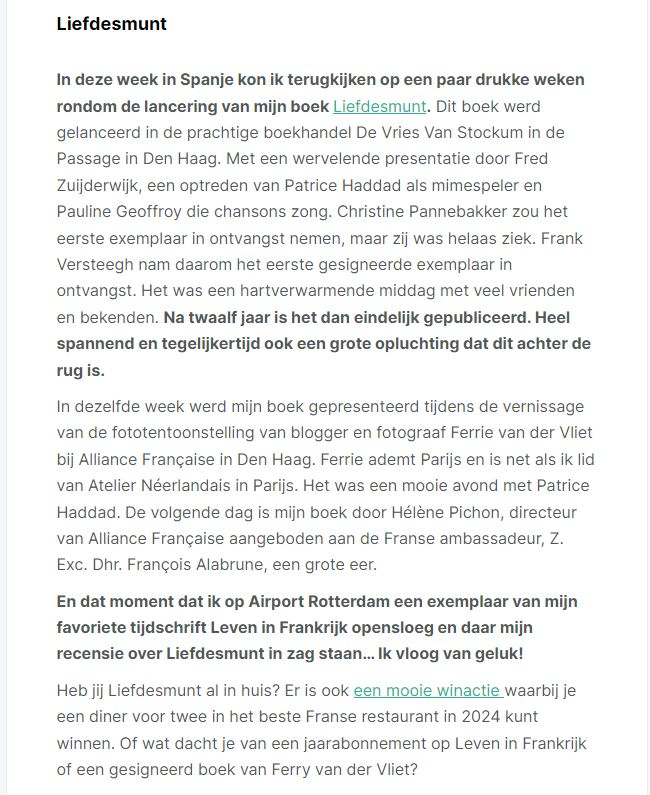 Uitnodiging voor de boekpresentatie van Liefdesmunt