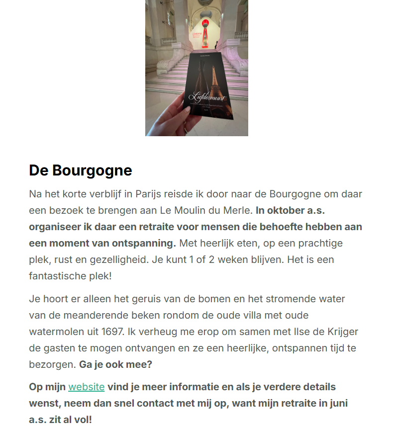 Nieuwsbrief: Genieten in je eigen tempo: schrijfretraite in Château d’Aix, Frankrijk.