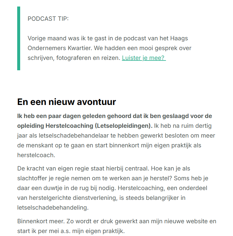 Nieuwsbrief maart 2025: Herdenken, schrijven, reizen – en een nieuw avontuur als herstelcoach